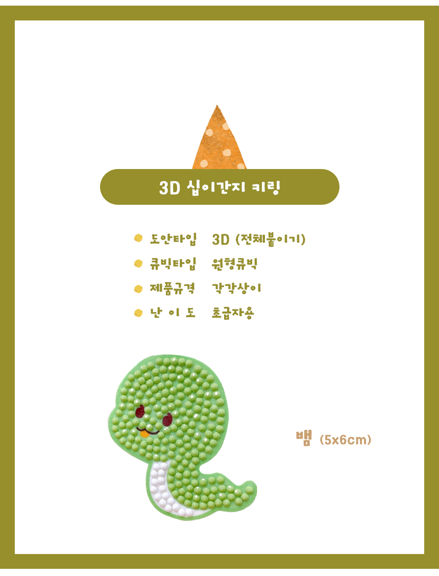 DIY 보석십자수 키링 십이간지 뱀 5x6cm
