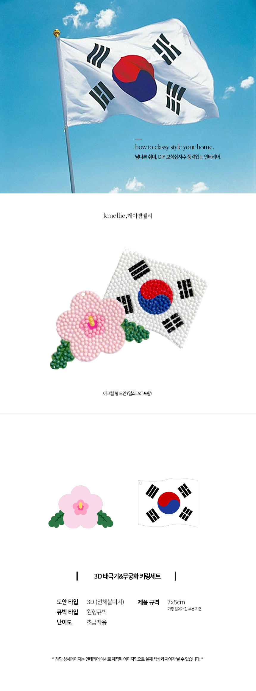 DIY 보석십자수 태극기 무궁화 키링세트 7x5cm
