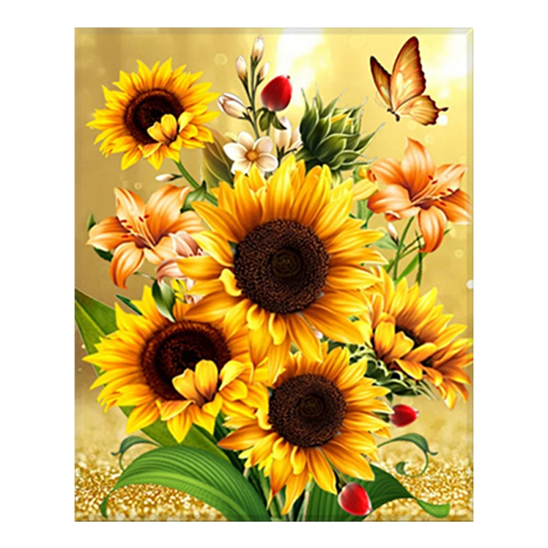 DIY 보석십자수 황금 해바라기와 나비 40x50cm 캔버스형