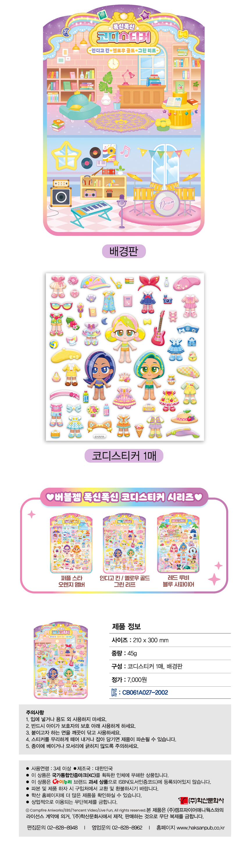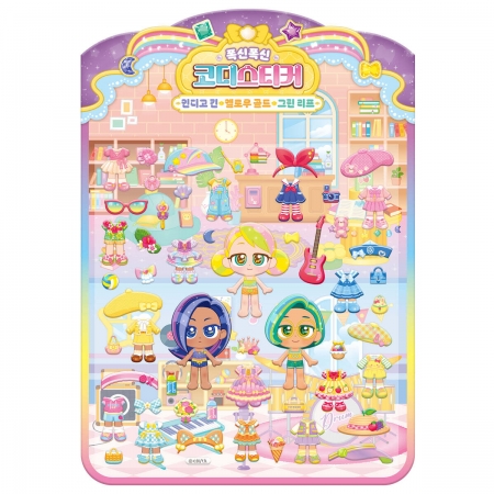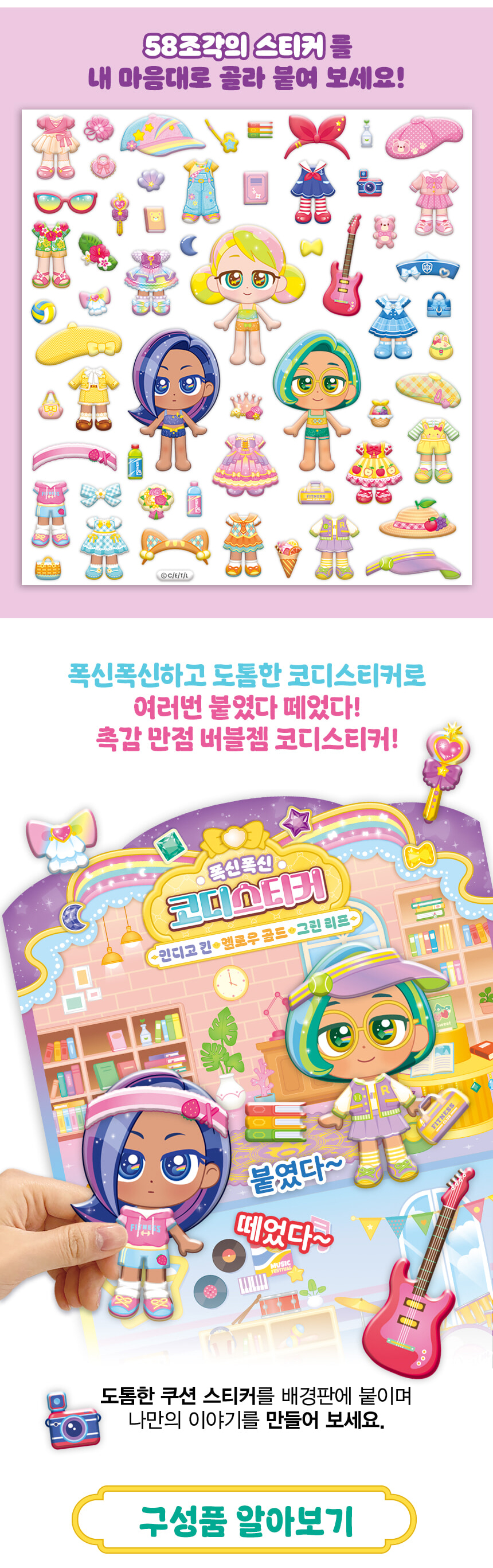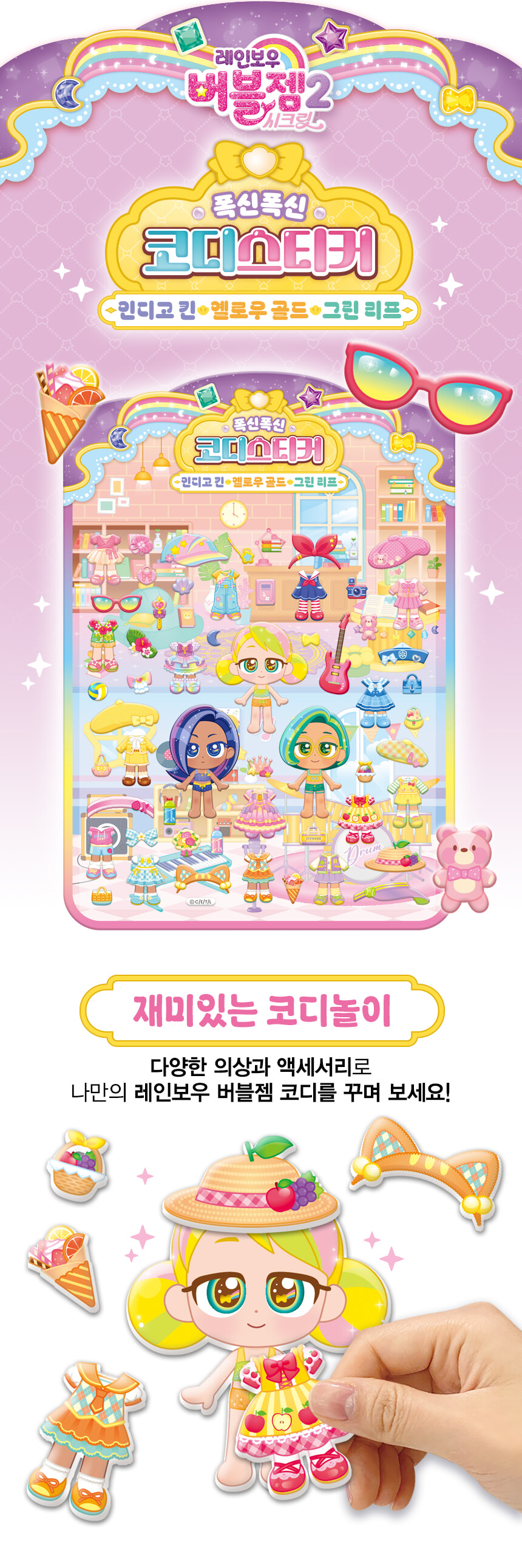 레인보우버블잼 시크릿 폭신폭신 코디스티커 인디고킨 옐로우골드 그린