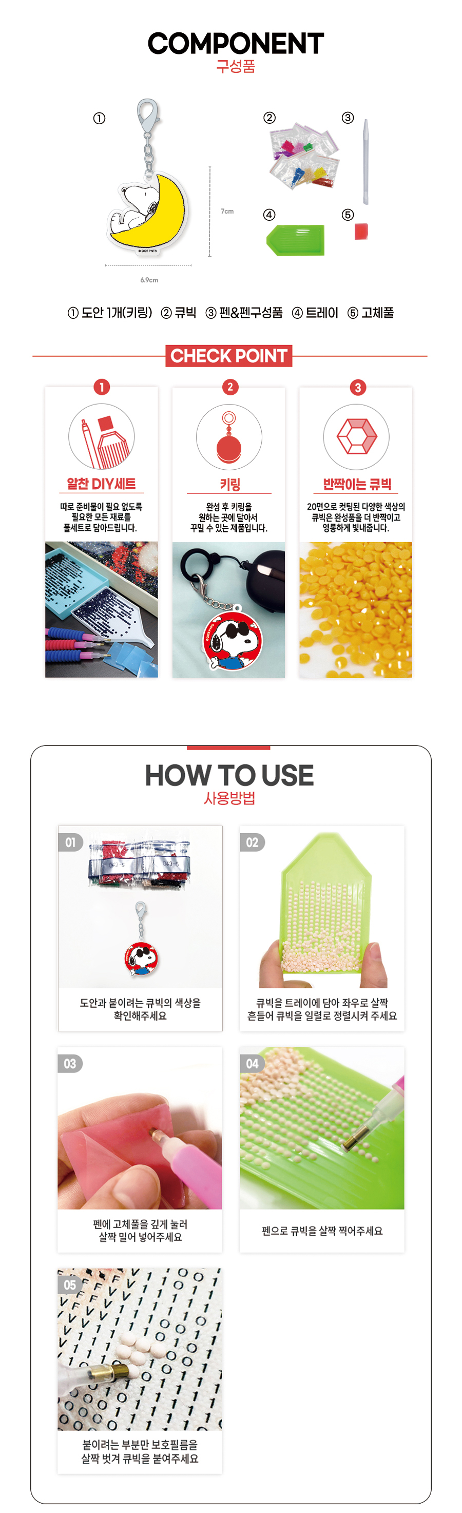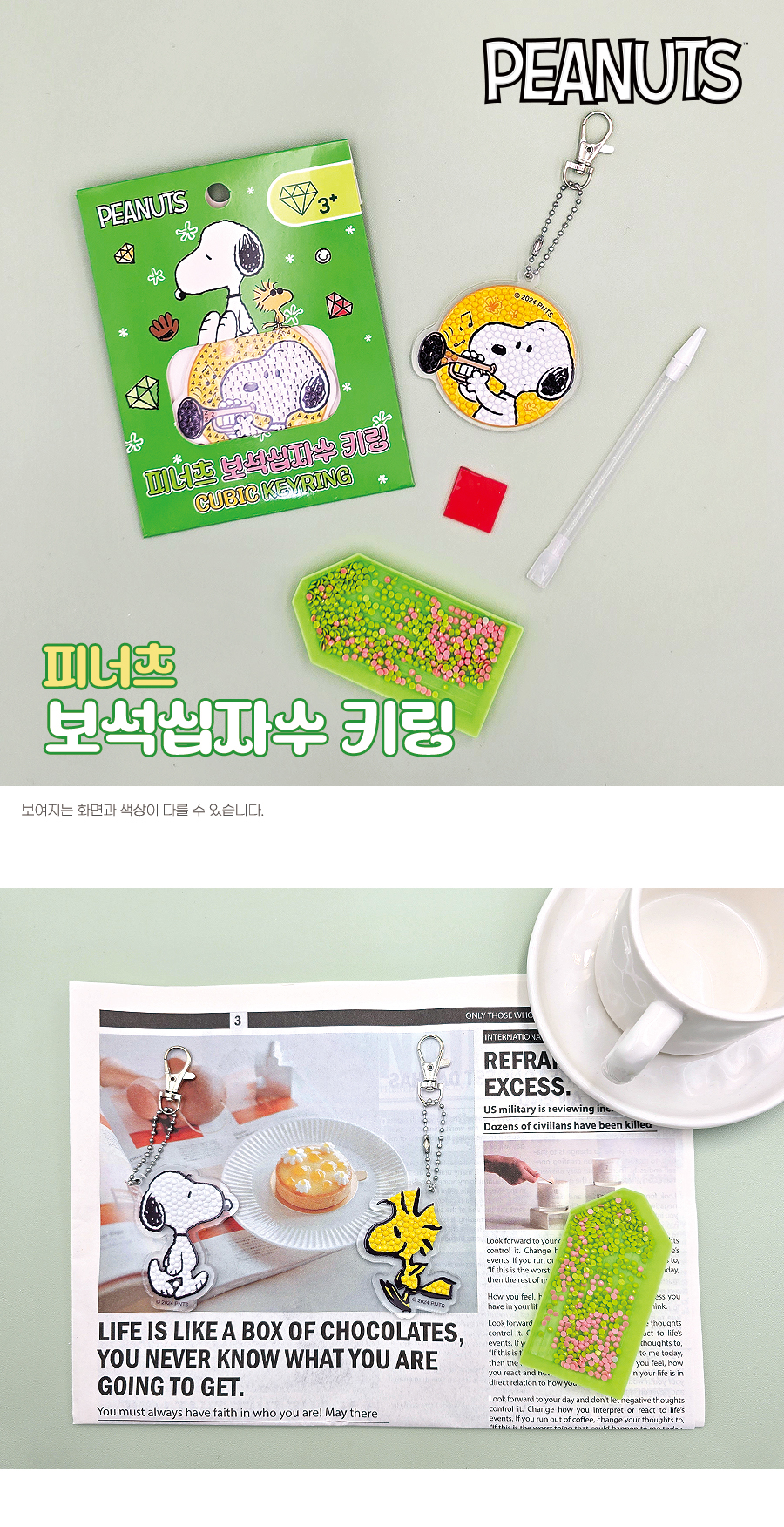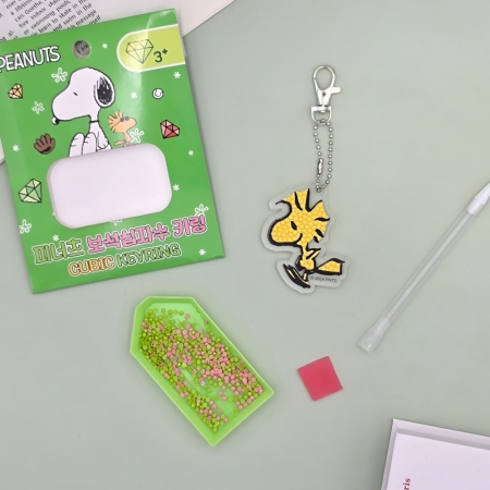 DIY 보석십자수 피너츠 스마일 우드스틱 키링